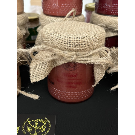 Miód kremowany z maliną to połączenie naturalnego miodu wielokwiatowego z liofilizowanymi malinami.