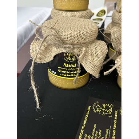 Miód kremowany z rokitnikiem to połączenie naturalnego miodu wielokwiatowego z liofilizowanym rokitnikiem.