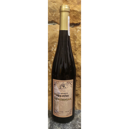 Rzemieślniczy miód pitny czwórniak wytworzony z miodu z własnej pasieki. Zawartość alkoholu 11%.